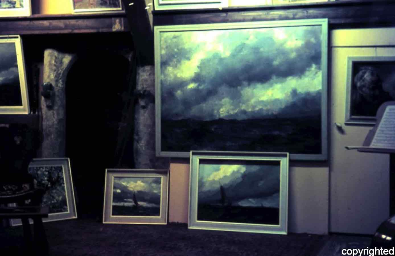 In dat atelier in het achterhuisje (voorheen de varkensstal) huisden ook vaak collega’s of leerlingen die mee schilderden. Het grote atelier (voormalige koeienstal) was een sfeervolle expositie- en ontvangstruimte, waar ook met collega’s vele bijeenkomsten werden gehouden.